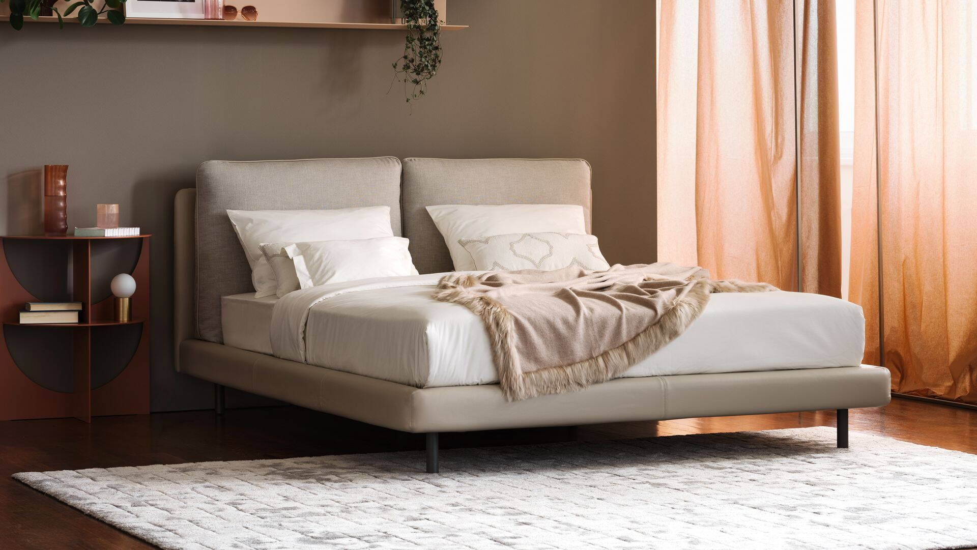 Weiche Bettwäsche, Plaids, Vorhänge und Teppiche sorgen für Wärme, verbessern die Akustik und machen das Schlafzimmer besonders gemütlich.